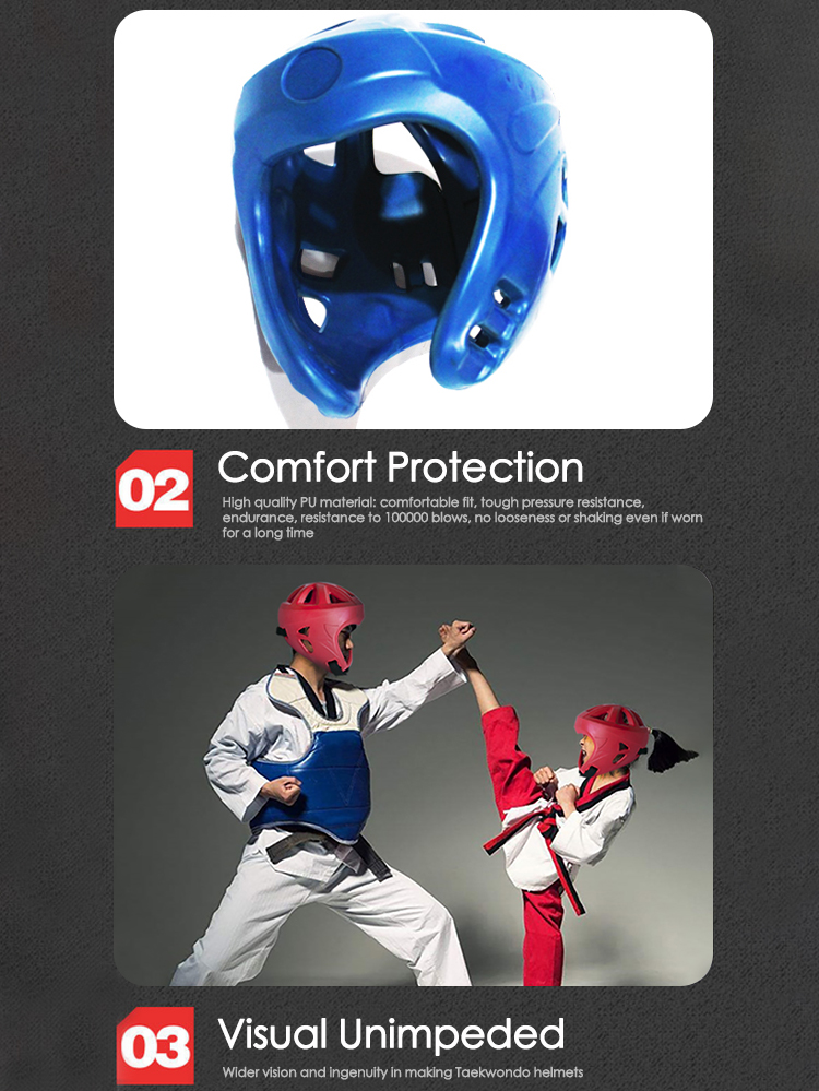 PU-polyurethaan Taekwondo-helm Hoofdbeschermer China Fabrikant Bescherm gezicht en hoofd Comfortabele beschermende kleding Pu-leer