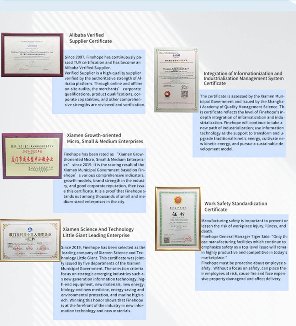 Finehope постоянно получает сертификат ISO 9001 с 2003 года. |